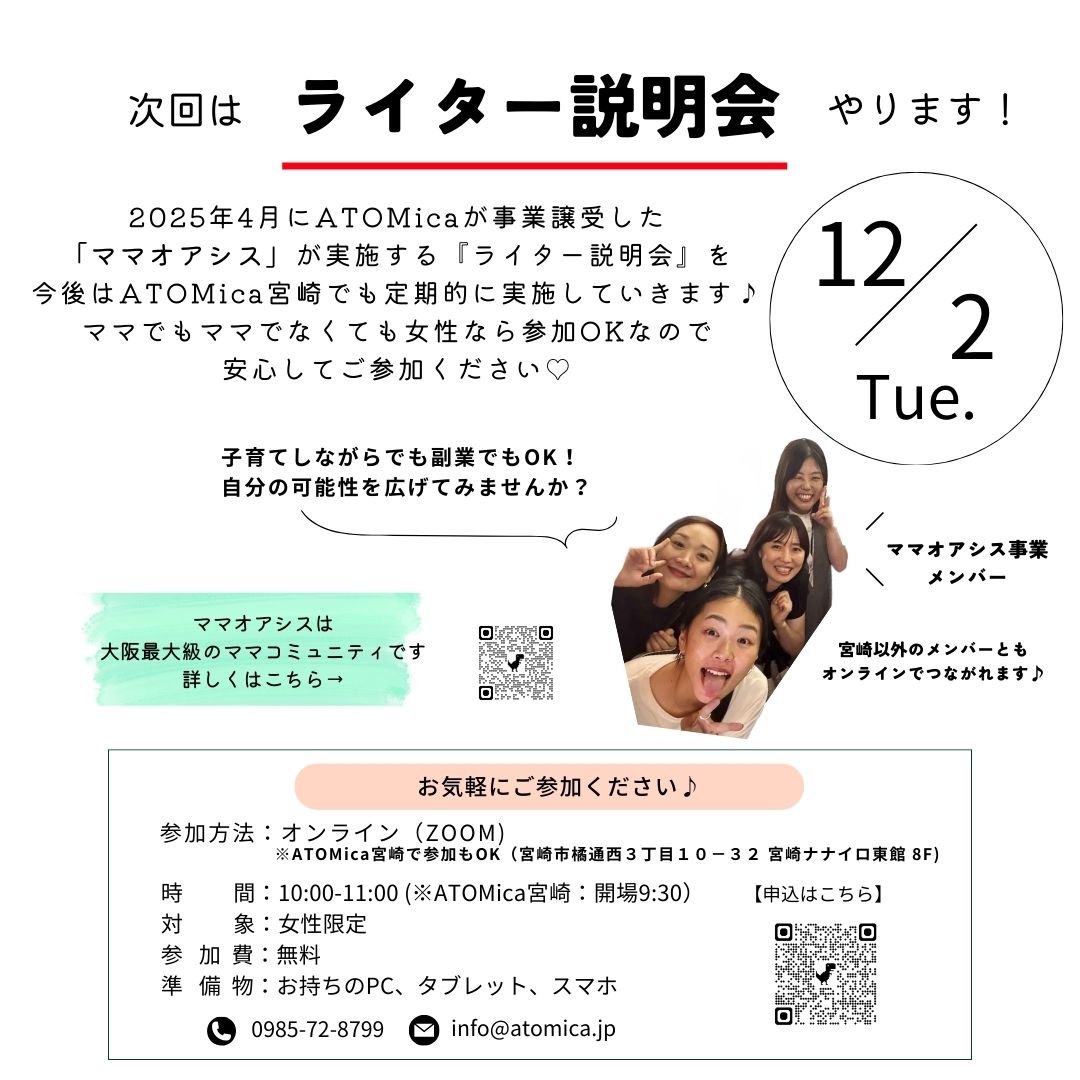みなさんこんにちは、ATOMica宮崎です。