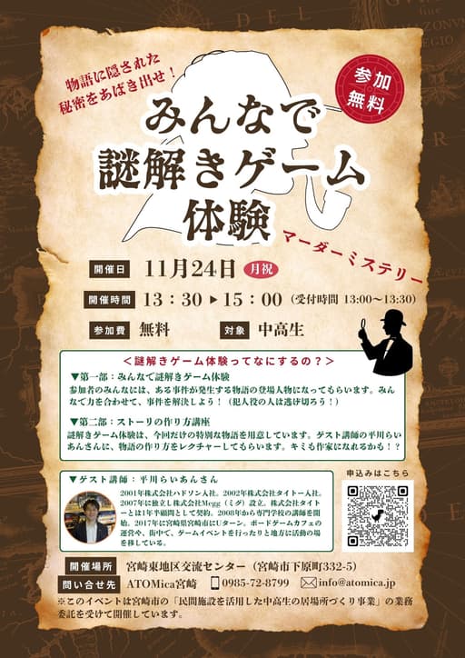 【11/24(月祝)】マダミス会実施!〜初出しのシナリオを世界最速で体験できる〜【中高生対象・謎解きイベント開催】