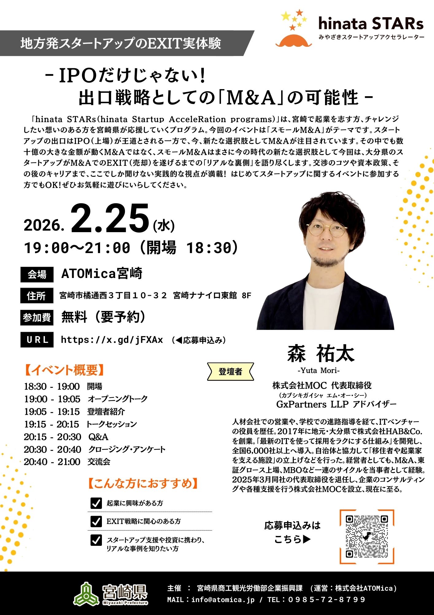 会場:ATOMica宮崎(宮崎市橘通西3丁目10-32 宮崎ナナイロ東館 8F)