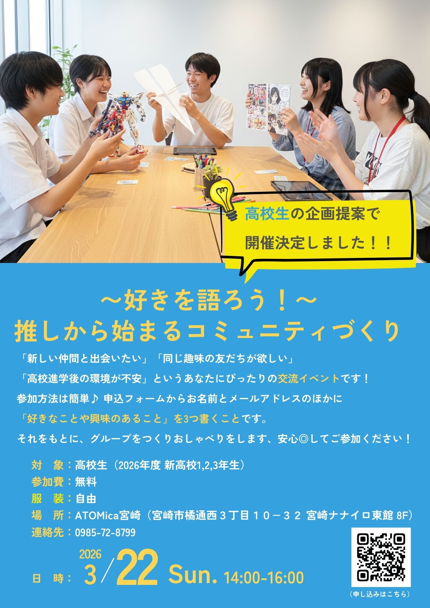 高校生の熱い企画提案から生まれた交流イベント、「MEET@ High School 〜好きを語ろう!推しから始まるコミュニティづくり〜」の開催が決定しました!