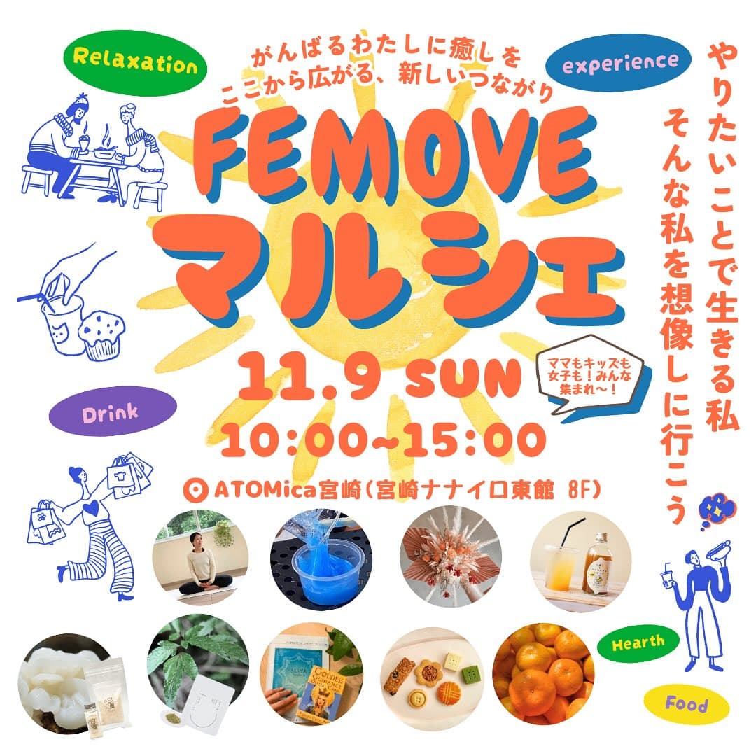 3月に立ち上げたATOMica宮崎女性コミュニティ【FEMOVE】のメンバーで初めて企画・運営している【FEMOVEマルシェ】です。